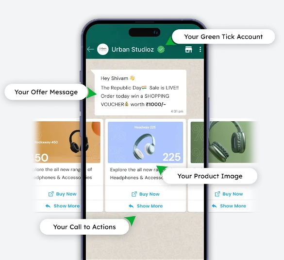 Broadcast Promotional Offers to Unlimited Users, Sell your Products on WhatsApp using Catalogs, Automate Messages via Integrations, Enable Multi-Agent Live Chat for Customer Support, Build Chatbots & Solve for 24 x 7 Support & Engagement ⚡️Powered by Official WhatsApp Business API